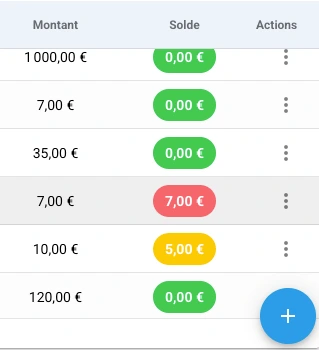 Jaune : paiement partiel, solde restant dû.